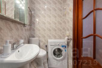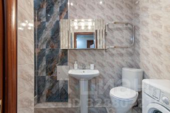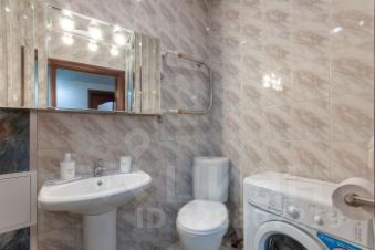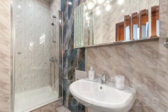 Ванная комната оснащена современной душевой кабиной и стиральной машиной.