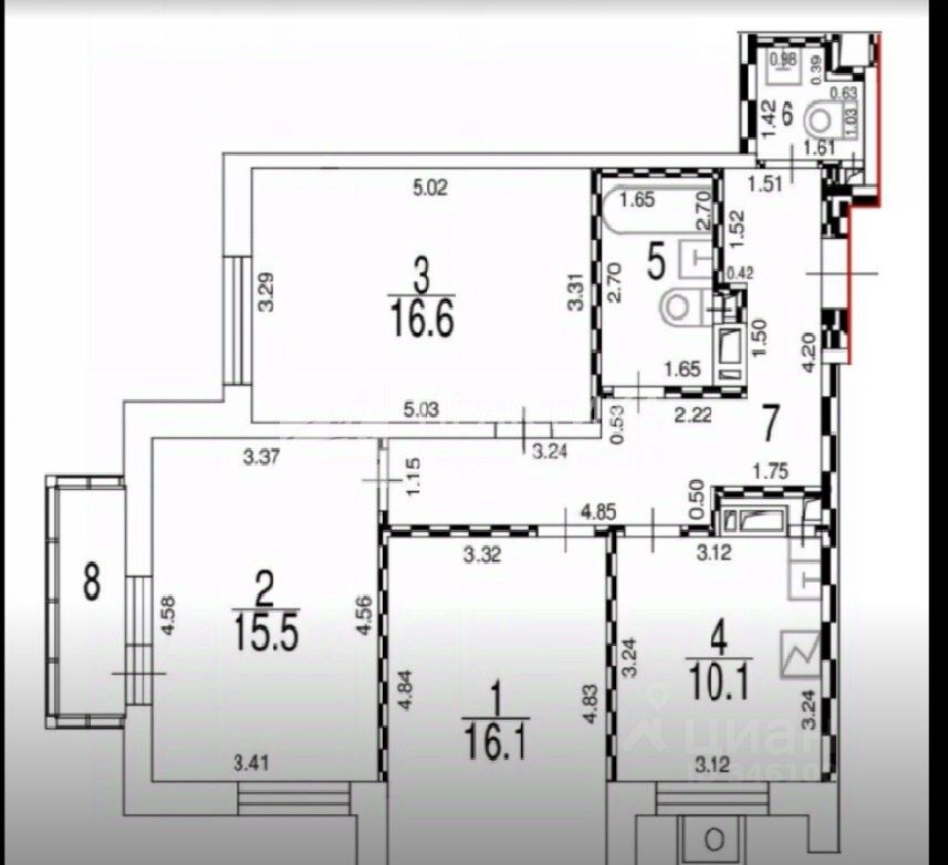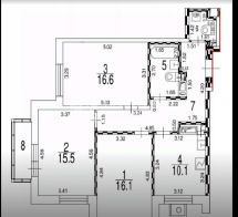 Площадь: общая 83 м². Комнаты просторные: 16,6 + 16,1 + 15,5 м².