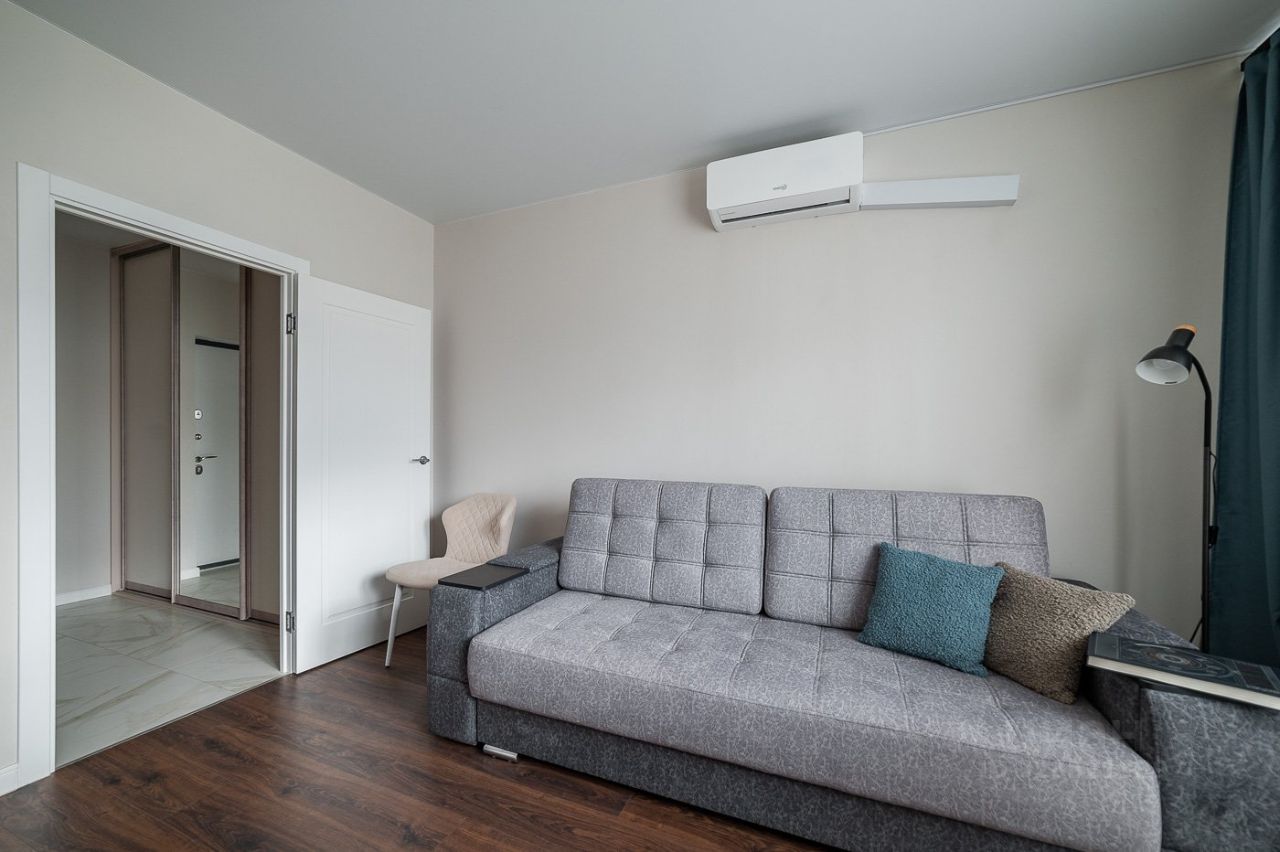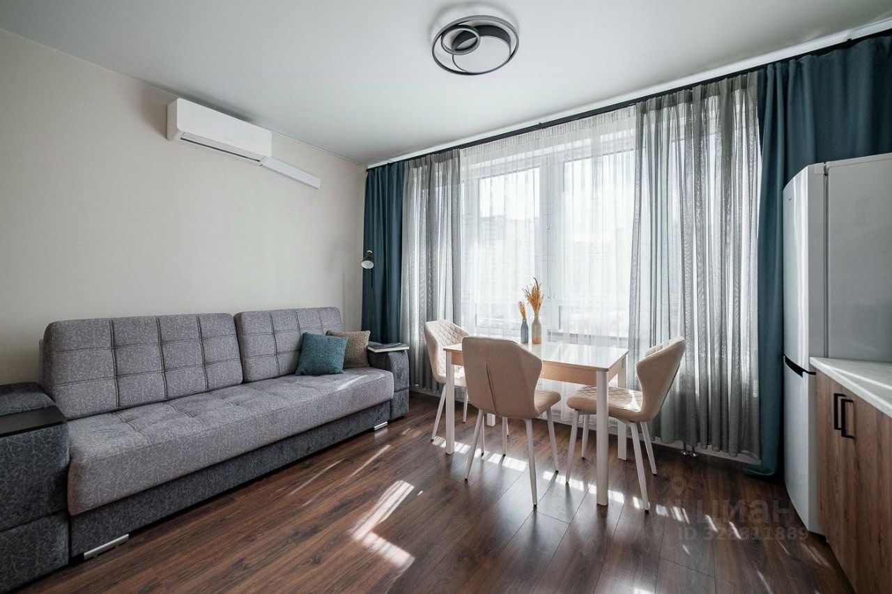 Светлая студия 26,2 м² для длительной аренды. В коридоре — большой шкаф-купе и тумба, имеется домофон. Просторный санузел с ванной, зеркалом с подсветкой и полочками для хранения, электрическим полотенцесушителем и стиральной машиной. В комнате: оборудованная кухня (керамечкая плита, холодильник, печь свч), диван-кровать с встроенным раскладным столиком и ящиками, раскладной обеденный стол на 4 персоны, кондиционер, торшер. До метро 12 мин пешком по аллее. В доме: Додо Пицца, Ароматный мир, Пятёрочка, Аптека, Яндекс Маркет. Через дорогу магазины ВкусВилл и Дикси. У метро торговый центр с ресторанами и магазинами, фитнес клубом, сетевые кофейни ДринКит, Сёрф Кофе.