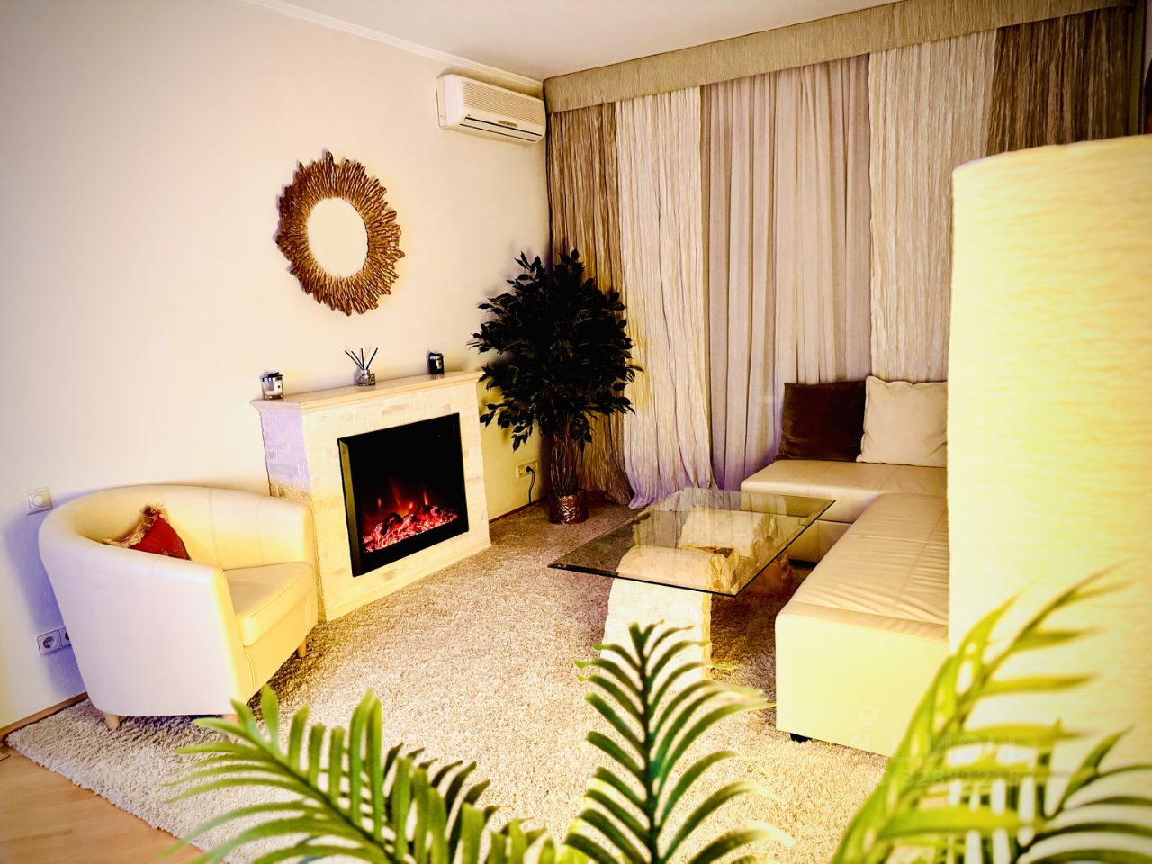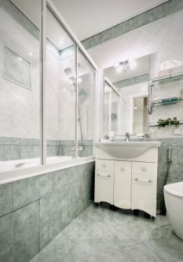 Стильный евроремонт с использованием качественных отделочных материалов, застеклённый и утеплённый балкон, стеклопакеты, два кондиционера, полы - паркет и плитка, беспроводной интернет, спутниковое ТВ с зарубежными каналами, камин. Со вкусом подобранная мебель из Италии: гостиная, прихожая, кухня, спальня - большая 2-х спальная кровать с итальянским ортопедическим матрасом и высококачественным постельным бельём. Кожаный диван в гостиной, раскладывающийся до размера полноценной двухместной кровати. Встроенный итальянский кухонный гарнитур с полным набором современной бытовой техники премиальных европейских брендов - новая стиральная машина AEG с функцией сушки, пиролитический духовой шкаф Siemens, новая посудомоечная машина Bosch, микроволновая печь Panasonic, капсульная кофемашина Nespresso, мультиварка, тостер Philips. Новый набор фарфоровой столовой посуды из Англии, хрустальные бокалы для вина, коньяка, воды от лучших итальянских производителей. Совмещённый санузел с новой качественной сантехникой и смесителями Grohe, бойлер.