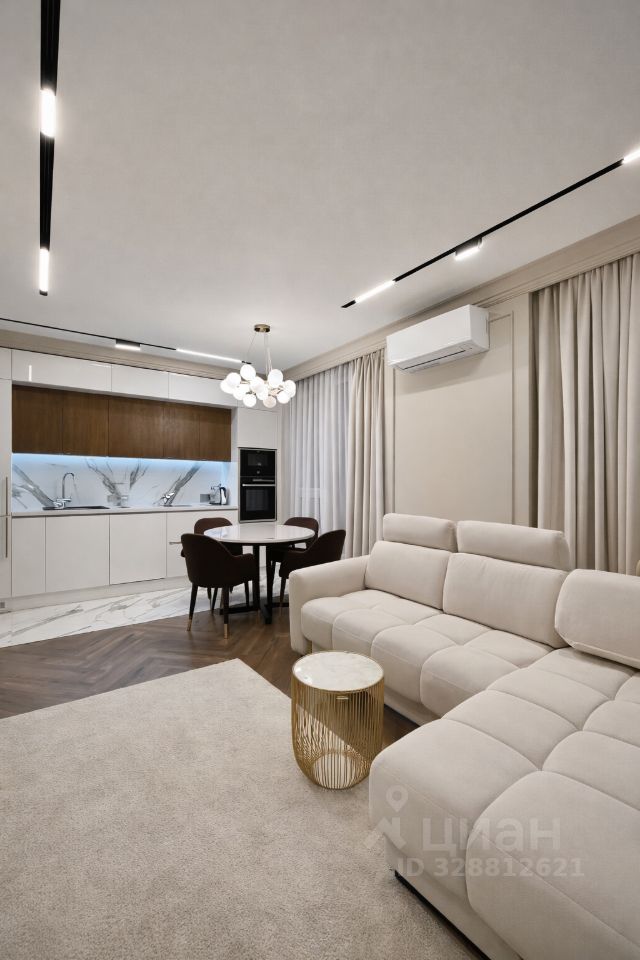 Сдаётся в аренду стильная трёхкомнатная квартира в современном доме по адресу Россия, Москва, Сельскохозяйственная улица, 38к2. Общая площадь квартиры составляет 70 кв. м, жилая площадь 45 кв. м, площадь кухни 20 кв. м. Квартира расположена на 15 этаже 22-этажного монолитного дома, построенного в 2020 году. Высокие потолки 3 метра, что добавляет пространства и воздуха.