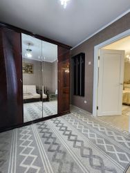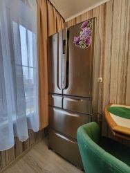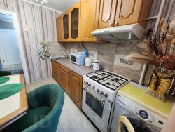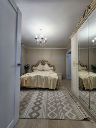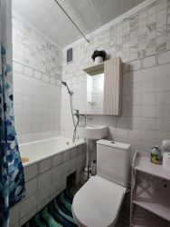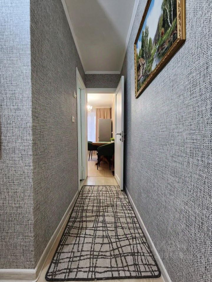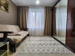 В квартире сделан качественный евроремонт, всё продумано до мелочей для вашего комфорта. В наличии вся необходимая мебель на кухне и в комнате. Техника тоже есть: холодильник, телевизор и стиральная машина. Совмещённый санузел оборудован ванной. Высота потолков — 2.64 метра, что создаёт ощущение пространства и уюта.