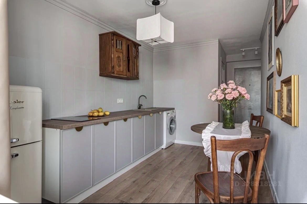 В комнате и на кухне есть вся необходимая мебель, что делает её готовой к комфортному проживанию. Санузел оборудован душевой кабиной с качественным душевым оборудованием . Кухня площадью 10 кв. м оснащена современной мебелью и техникой