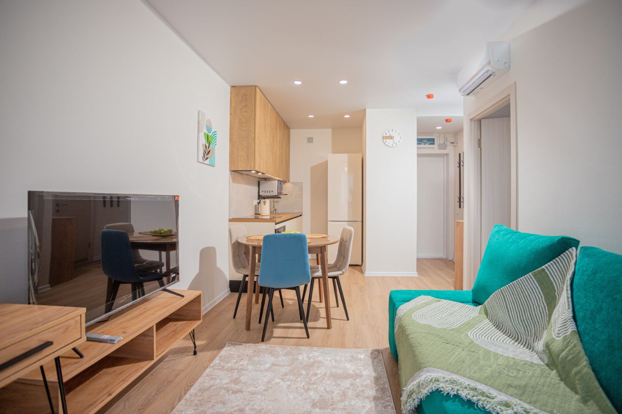 Квартира полностью оборудована новой мебелью и техникой для комфортного проживания.