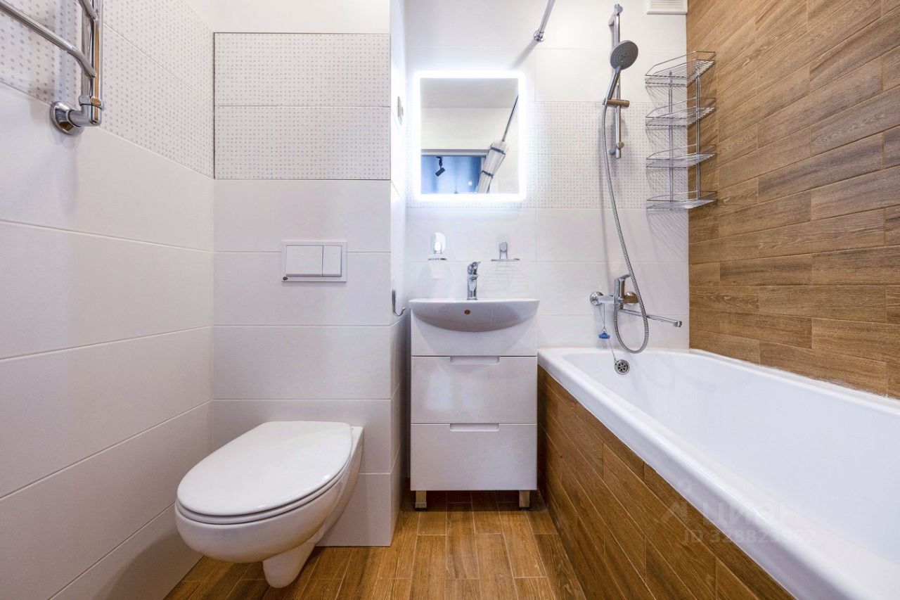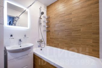 Сан/узел: Ванна, раковина с зоной для хранения вещей, зеркало с подсветкой.