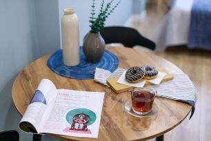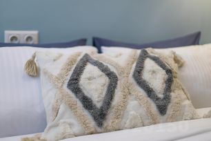 Наши апартаменты находятся в классическом тихом зелёном районе Москвы в новом ЖК Кларнет. После насыщенного дня вы сможете отдохнуть на удобной кровати. Она идеальна для этого: премиальное постельное бельё, ортопедический матрас, удобные подушки — рецепт прекрасного сна и отдыха!