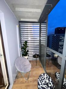 Квартира оформлена в светлых тонах и имеет косметический ремонт. В комнате и на кухне есть вся необходимая мебель. Из техники к вашим услугам: кондиционер, холодильник, посудомоечная машина, телевизор и стирально-сушильная машина. Санузел совмещенный, оборудован душевой кабиной. Для вашего удобства есть балкон с видом во двор.