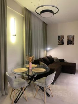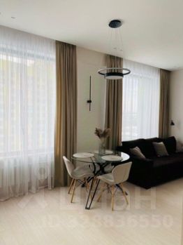 Просторная солнечная гостиная с двумя большими окнами (высота потолков 3,1м), где можно разместиться как в уютной зоне отдыха на удобном итальянском диване Estetica для просмотра большого ТВ Samsung 65^, так и за обеденным столом в столовой зоне.