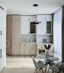Кухня оборудована посудомоечной машиной Bosch (Германия), холодильником Samsung, духовым шкафом Bosch (Германия), индукционной плитой и вытяжкой Maunfeld, чайником Moulinex, фильтрами для очистки воды Аквафор.