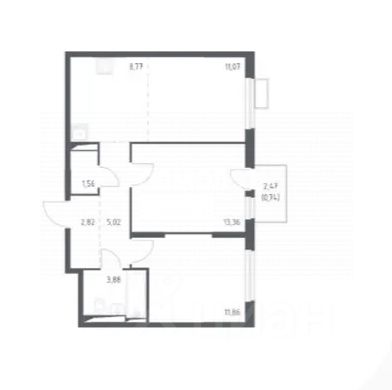 Бoльшая кухня-гостиная, просторная прихожая, комната с балконом, спальная комната, санузел совмещенный