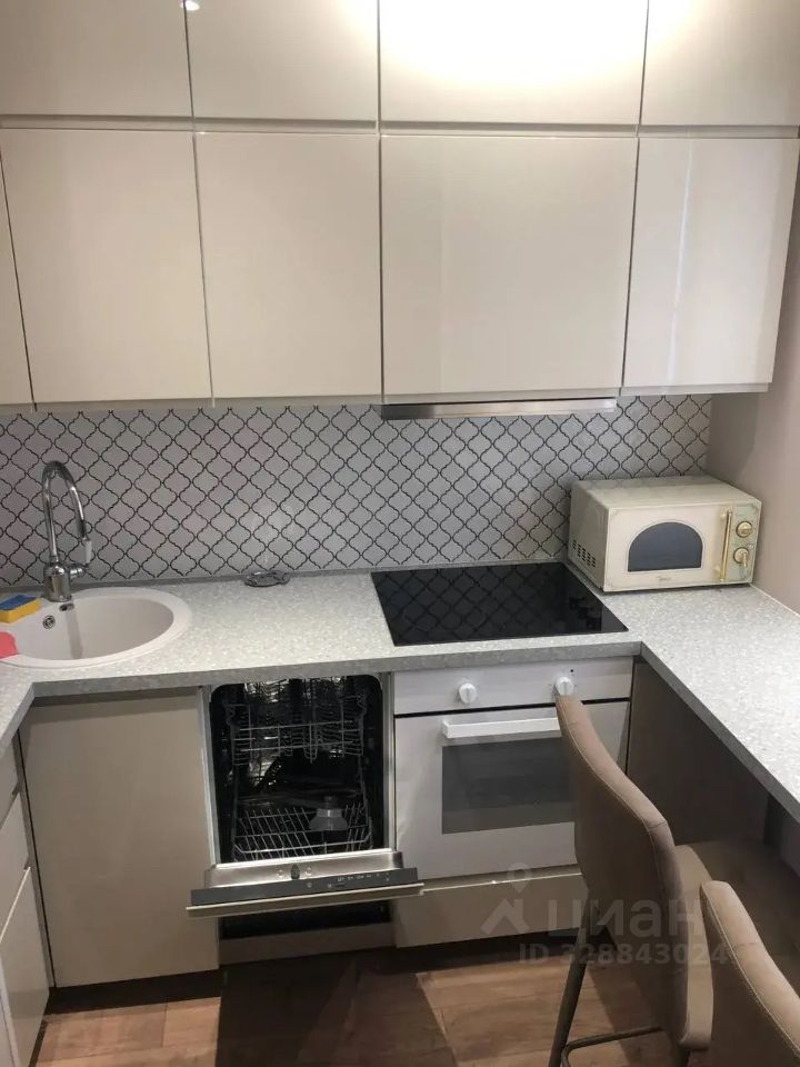 В квартире сделан евроремонт, поэтому она выглядит стильно и современно. Есть вся необходимая мебель: на кухне и в комнате. Установлена современная бытовая техника: кондиционер, холодильник, посудомоечная и стиральная машины, телевизор. Санузел совмещённый, в ванной комнате установлена ванна. Квартира оснащена интернетом и телефоном, а также есть лоджия для отдыха и хранения вещей.