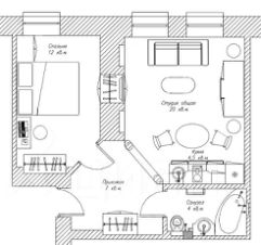 Гостиная-кухня: 20 кв.м / 4,5 кв.м