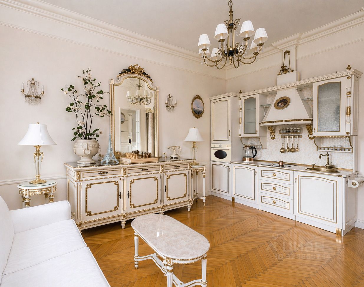 Эксклюзивная квартира с планировкой: кухня-гостиная (open space) и изолированной спальней на Патриарших прудах в историческом доме с приватным двором-садом, расположенном на территории бывшего парка дворца графа Разумовского (знаменитого Английского клуба). Это уникальная локация с атмосферой притяжения власти, бизнеса и бомонда, где в шаговой доступности находятся главные музеи, театры, посольства и лучшие рестораны столицы. Уютное пространство в стиле неоклассики вдохновлено интерьерами столичной аристократии XIX в. Интерьер гармонично сочетает современную и антикварную мебель. Из панорамных окон открывается прекрасный вид на юго-запад столицы.