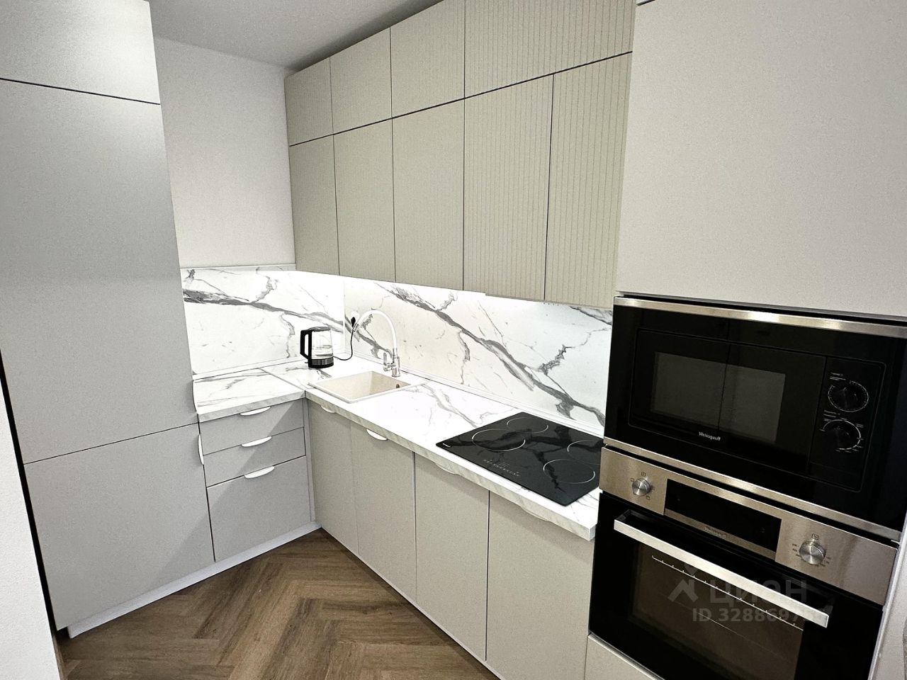 В квартире сделан евроремонт, что придаёт ей стильный и современный вид. Она полностью меблирована, поэтому вам не нужно беспокоиться о покупке мебели. На кухне и в комнате есть всё необходимое для комфортного проживания. Из техники в квартире установлены кондиционер, холодильник, посудомоечная машина, телевизор и стиральная машина. Санузел совмещённый, с ванной, что создаёт дополнительное удобство.
