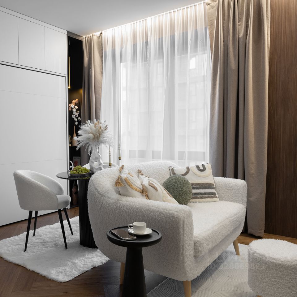 Дизайнерская квартира в доме бизнес-класса с системой "умный дом" и функциональностью уровня просторной однокомнатной квартиры за счёт трансформируемого пространства и уникальных решений.