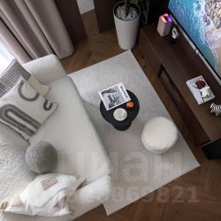 — днём: просторная гостиная ~18 м², где много воздуха и нет лишних предметов — для встреч с друзьями, работы или отдыха;