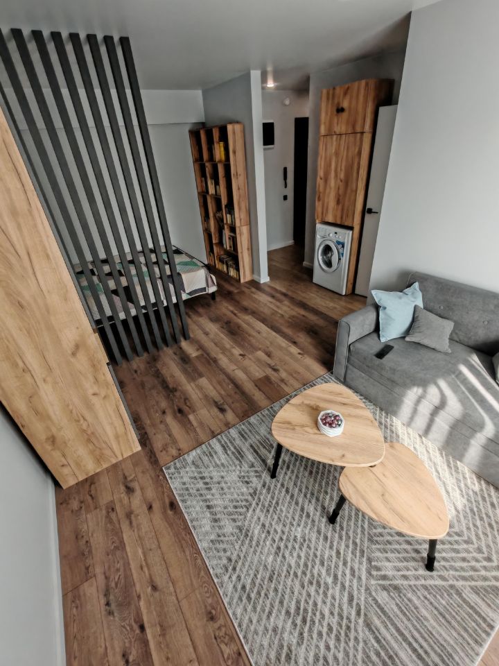 В комнате комфортная ТВ-зона и уютная спальная с 2-спальной кроватью и ортопедическим матрасом.