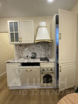 - На кухне гарнитур со встроенной техникой: плита индукция, посудомойка на 60 см Ginzzu, встроенный холодильник Beko, духовка Maunfeld; обеденная зона с подсветкой состоящая из стола и 3х стульев.