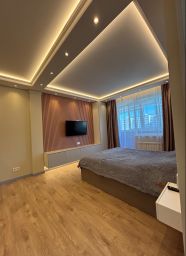 В квартире выполнен дизайнерский ремонт, что придаёт ей стильный и современный вид. Окна выходят во двор, поэтому в квартире тихо и спокойно. В распоряжении арендаторов — вся необходимая мебель на кухне и в комнате. Также квартира оборудована современной техникой: кондиционер, холодильник, посудомоечная, водонагреватель, стиральная машины, телевизор.В ванной комнате установлена ванна, что позволит расслабиться после трудного дня.