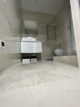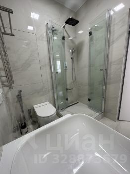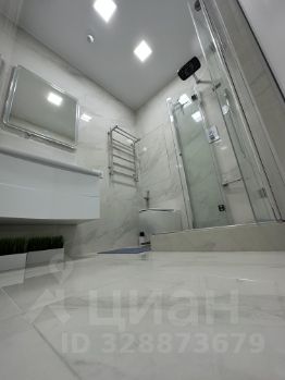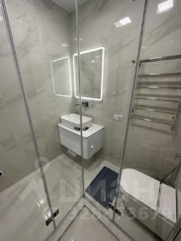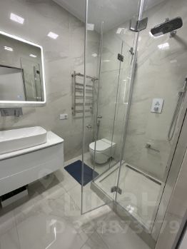 Современная сантехника (душ с термостатом, унитаз с импульсным смывом, датчики протечки, водонагреватель, складные душевые двери, зеркало с подогревом от запотевания). В санузле три источника света для идеального макияжа или чистого бритья. Теплый пол с подключением к умному дому.