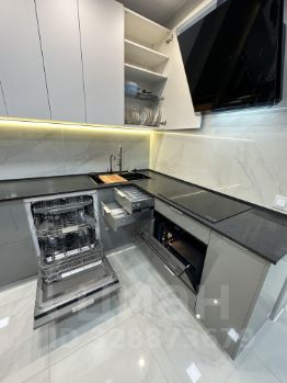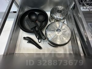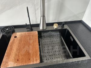 Вместительная полноценная кухня с индукционной варочной Bosch и духовкой с функцией свч Samsung. Вытяжка с управлением жестами без прикосновений.