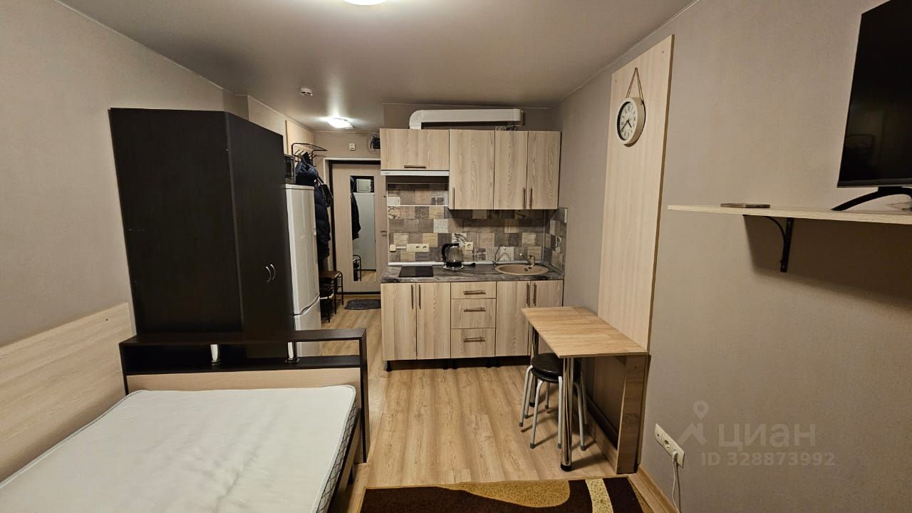В квартире выполнен качественный евроремонт, который создает атмосферу уюта и современности. Высокие потолки 2.8 метра добавляют пространству воздуха и света. Студия полностью укомплектована необходимой мебелью и техникой: холодильник, телевизор и стиральная машина. В совмещенном санузле есть ванна, что позволит расслабиться после рабочего дня.