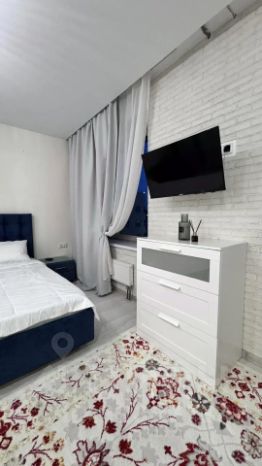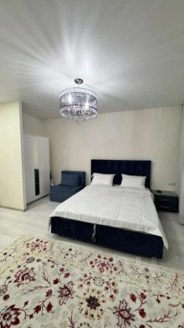 В квартире сделан дизайнерский ремонт. Пространство студии грамотно организовано, есть вся необходимая мебель как на кухне, так и в комнате. В санузле установлена душевая кабина. Из техники вы найдете кондиционер, холодильник, посудомоечную и стиральную машины, а также телевизор. Окна выходят во двор, поэтому в квартире всегда тихо и спокойно.