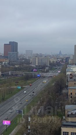 Лоджия на всю квартиру с барной стойкой, диваном и прекрасным видом на центр Москвы.