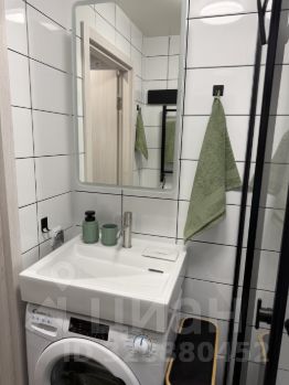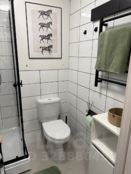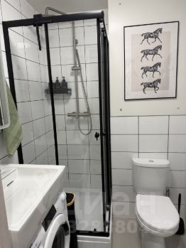 Просторная душевая кабина, зеркальный шкаф с подсветкой, полотенцесушитель — всё продумано для вашего комфорта. И стиральная машина, конечно, тоже есть.