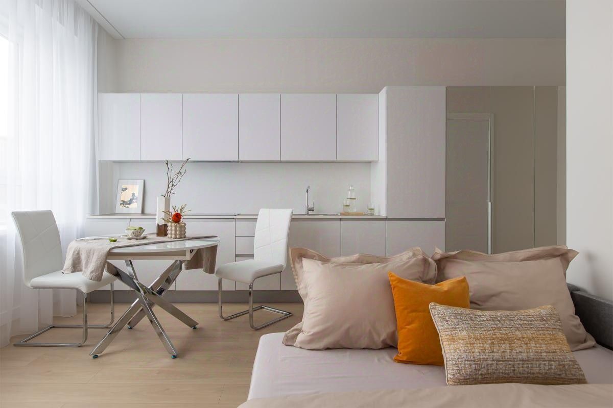 Апартамент с индивидуальным интерьерным решением в современном стиле, качественной отделкой, мебелью и техникой для жизни от ведущих брендов (Hotpoint Ariston):