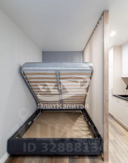 Спальное место: зонированная кровать с подъемным механизмом (матрас Аскона) + раскладной диван для гостей.