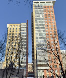 Дом расположен на закрытой охраняемой территории площадью около 2 гектаров. Пространство двора напоминает частную резиденцию: много зелени, ощущение уединения и спокойствия, при этом вы остаетесь в городе.