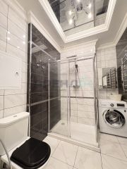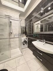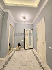 Интерьер выполнен с использованием современных решений, включая теневой профиль, что придает пространству аккуратный и эстетичный вид. Квартира очень тихая благодаря двойным стеклопакетам, что обеспечивает комфорт и спокойствие в любое время суток.