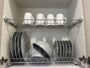 Полностью оборудованная кухня с холодильником, плитой, духовкой, чайником, посудомоечной машиной, фильтром для воды, микроволновкой и полным набором посуды;