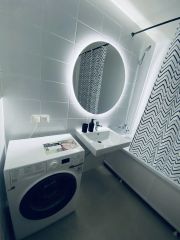 Сдается впервые уютная евродвушка с новой мебелью и техникой. Изолированная спальня с большой двухместной кроватью 160*200 с мягким изголовьем, ортопедический матрас Аскона для Вашего спокойного и комфортного сна. На кухне имеется вся техника,необходимая для комфортного проживания: полноценная индукционная варочная поверхность на 4 конфорки,духовой шкаф с конвекцией, грилем и таймером, микроволновка, электрический чайник с различными режимами подогрева воды,вместительный холодильник. Круглый раскладывающийся стол на кухне просто создан для теплых семейных ужинов в кругу близких,где всегда всем хватит места. В зоне гостиной находится двухместный ортопедический диван (спальное место 160*200), вместительная тумба и телевизор приятного размера диагональю 50 с отличными характеристиками - подойдет как для просмотра фильмов в 4к (есть ИИ-масштабирование до 4к любого фильма), так и для динамических игр на плойке-геймеры поймут. В ванной комнате и коридоре находятся зеркала с подсветкой и регулировкой яркости для Вашего безупречного вида,также их можно использовать как приятную приглушенную фоновую подсветку помещений. В коридоре и спальне имеются вместительные шкафы.