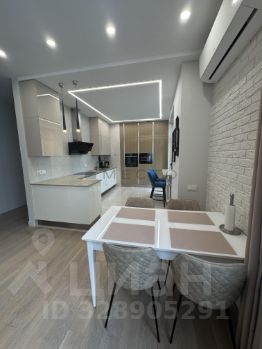 Кухня-гостиная с обеденной зоной, барной стойкой и выходом на вторую лоджию