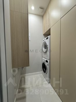 Отдельная постирочная комната: стиральная и сушильная машины, раковина, системы хранения
