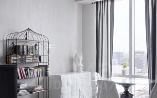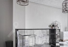 Мебель : стулья дизайна F.Noveber, повторяющие изгибы тела мужчины и женщины; барные стулья F.Starck; мягкая мебель ( диван, кровать, кресла) из Италии ; антикварный комод на кухне и круглый стол из Бельгии и Франции . Мебель на фото стоит в разных вариантах расстановки.