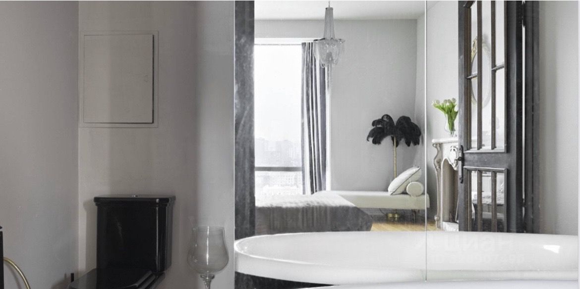 Дизайнерские интерьер и мебель с прекрасным видом на МГУ , Мосфильм и гольф поле, ванная с видом в окно, 2 спальни , 2 санузлами ,2 гардеробные и кухня -гостиная с панорамными окнами.