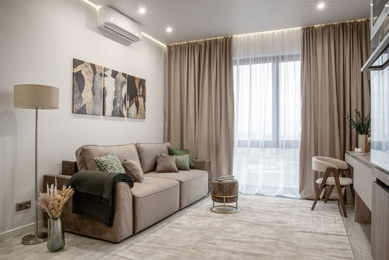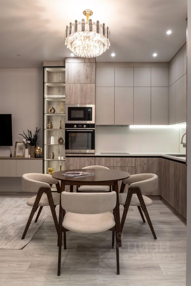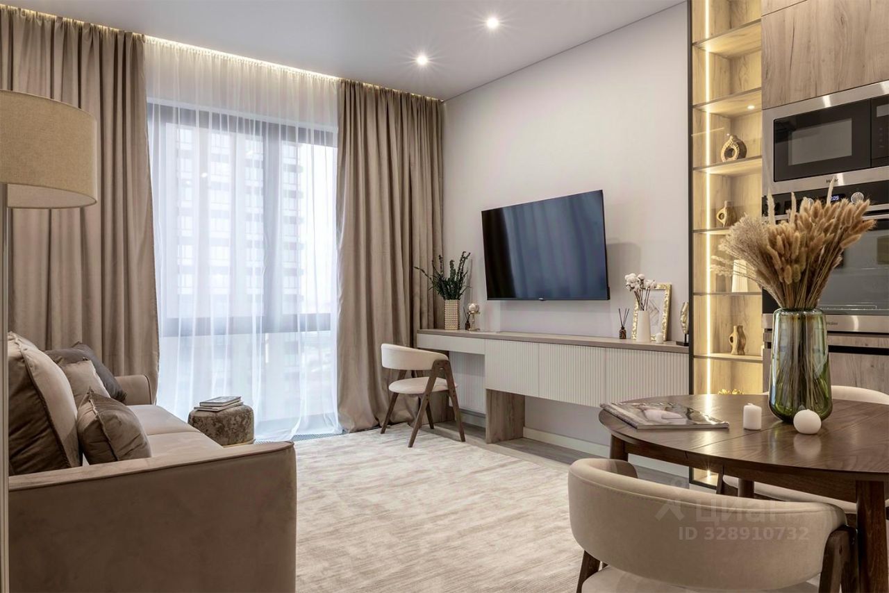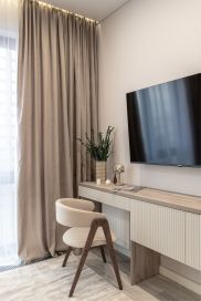 Квартира полностью укомплектована мебелью и техникой — заезжай и живи. Интерьер выполнен в спокойных нейтральных тонах, продуман до мелочей и создает ощущение уюта и комфорта.