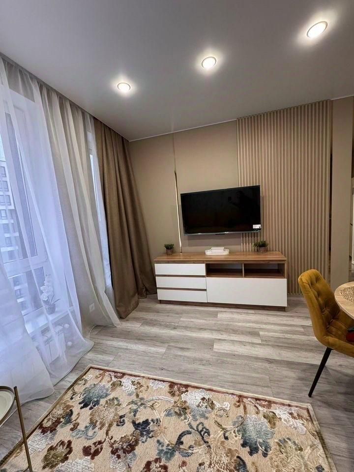 Квартира с евроремонтом, в которой есть всё для комфортной жизни. Жилая площадь составляет 26 кв. м, а кухня впечатляющих 18 кв. м, где удобно принимать гостей и готовить. В квартире есть необходимая техника: кондиционер, холодильник, посудомоечная машина, телевизор и стиральная машина. Санузел совмещённый, с ванной. В комнате и на кухне есть мебель, что позволяет сразу же заселиться и начать жить.