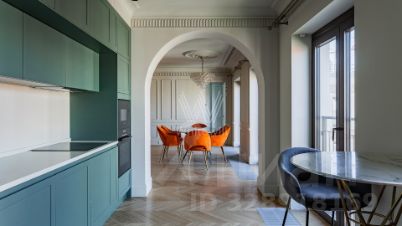 Квартира с 2-мя спальнями общей площадью 140 м² в комплексе "I'm на Садовом" на 7-м этаже. Выполнена премиальная дизайнерская отделка, светлый интерьер оформлен в современном стиле. Планировка: просторная кухня-гостиная с обеденной зоной, 2 спальни, ванная комната, санузел с душем, постирочная, гардеробная, холл. Квартира укомплектована современной бытовой техникой, установлена посудомоечная и стиральная машина. Машиноместо в подземном паркинге. Панорамные окна выходят во внутренний благоустроенный двор.