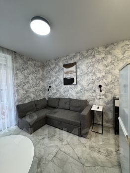 Сдаётся замечательная квартира-студия с качественным дизайнерским ремонтом. Квартира полностью укомплектована необходимой мебелью и бытовой техникой: холодильник, стиральная машина, смарт телевизор, кондиционер, микроволновая печь, духовой щкаф встроенный, электроплита, пылесос, гладильная доска с утюгом, чайник, проточная система "Электролюкс" (на время отключения горячей воды). На кухне установлена система фильтрации воды "Аквафор",установлена система защиты от протечки воды "Аквастоп". В квартиру проведён интернет. Проживание строго без животных.