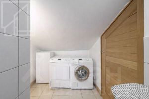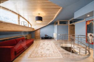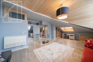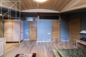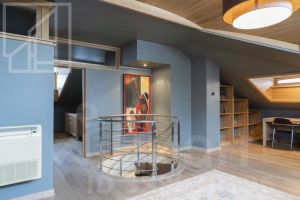 Планировка:1-й этаж: просторный холл, светлая гостиная с камином, кухня-столовая с выходом на балкон, мастер-спальня, кабинет (или детская), ванная комната и гостевой санузел. 2?й этаж: спальня с собственной ванной и гардеробной, вторая гостиная, а также отдельный блок для персонала — с постирочной, душевой и кладовой. Окна выходят на две стороны. Потолки 3.2м.