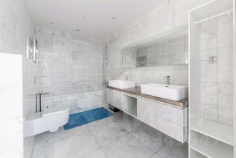 Дополняет спальню - выход в шикарную ванную комнату с панорамными видами на Москву.