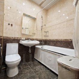 Для вашего удобства: В квартире два санузла: большой совмещенный (ванна) и отдельный гостевой туалет. Это спасение для большой семьи утром, когда все собираются по делам.