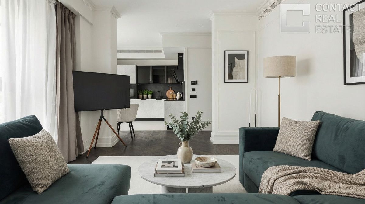 3-комнатные апартаменты площадью 85,8 м² в престижном ЖК "Поклонная 9" на Кутузовском проспекте. Апартамент меблирован