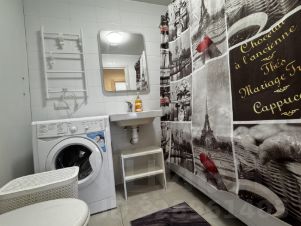 Квартира с евроремонтом, полностью готова для комфортного проживания. В комнатах и на кухне есть вся необходимая мебель. Из техники — кондиционер, холодильник, телевизор и стиральная машина. В ванной установлена полноценная ванна, а также есть как совмещённый, так и отдельный санузел.
