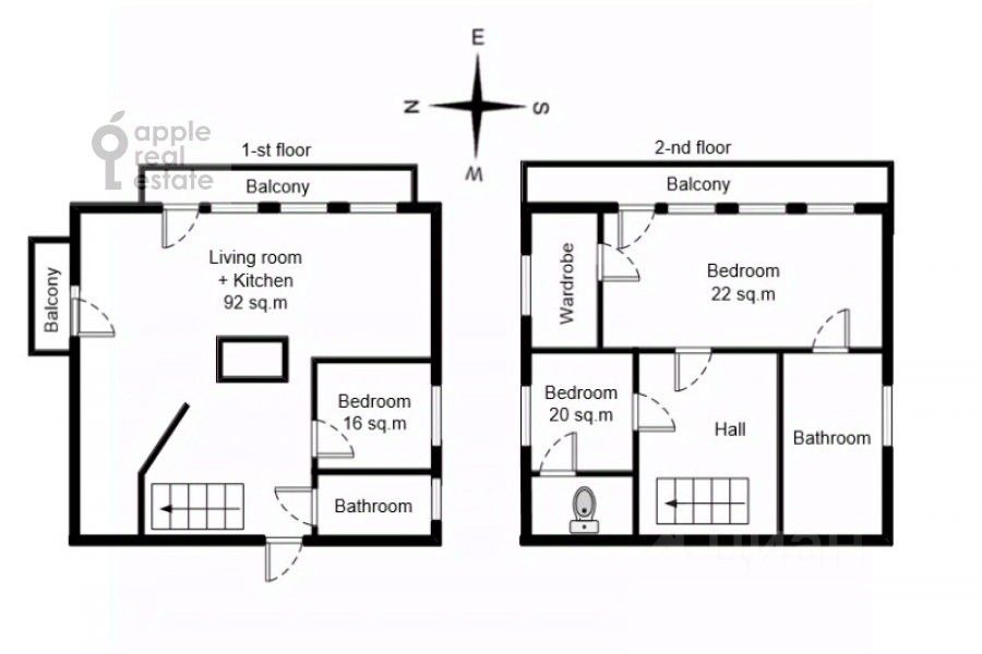 1 лоджия, 1 балкон