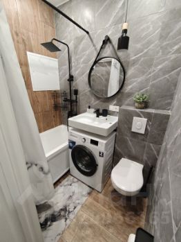 Просторный совмещённый санузел с полноценной ванной, новой современной сантехникой и стиральной машиной — всё для вашего удобства.